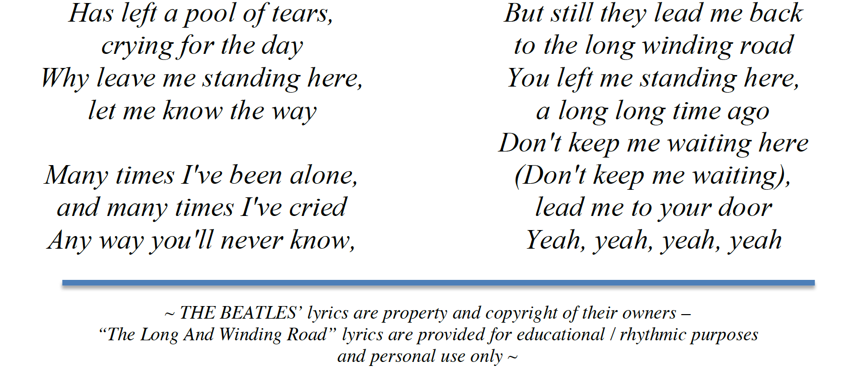 All lyrics are property and copyright of their owners. Lyrics provided for educational, rhythmic and personal use only.